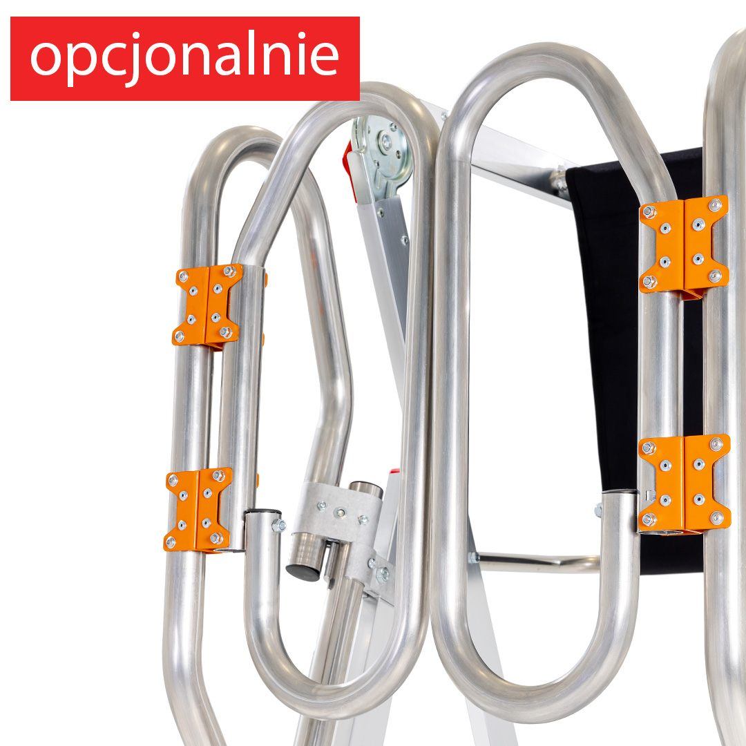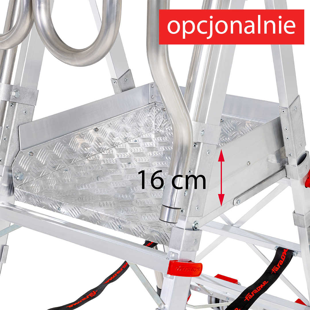 Prosty mechanizm składania sprawia, że podest jest łatwy w transporcie i zajmuje niewiele miejsca podczas przechowywania.