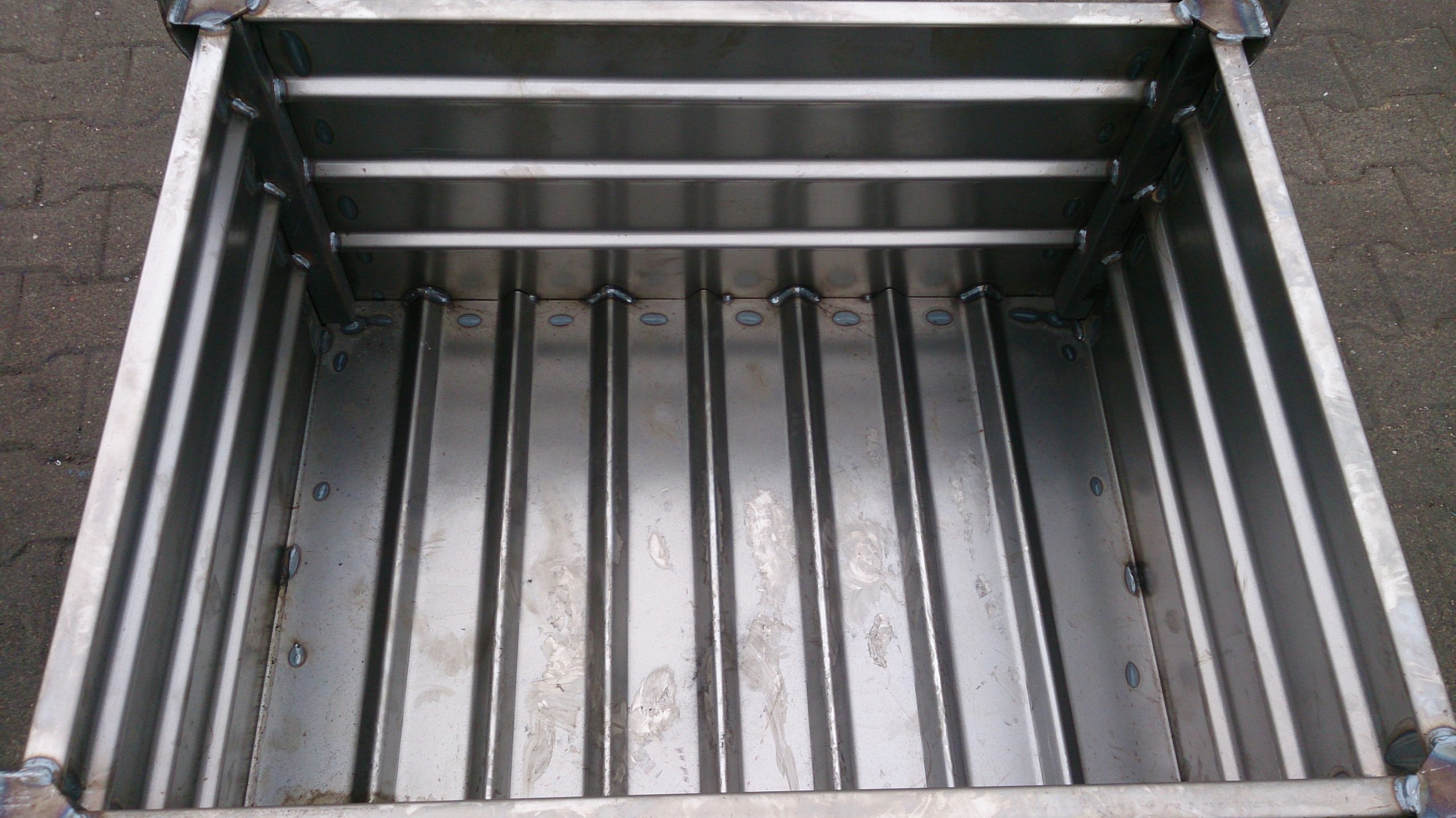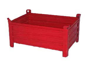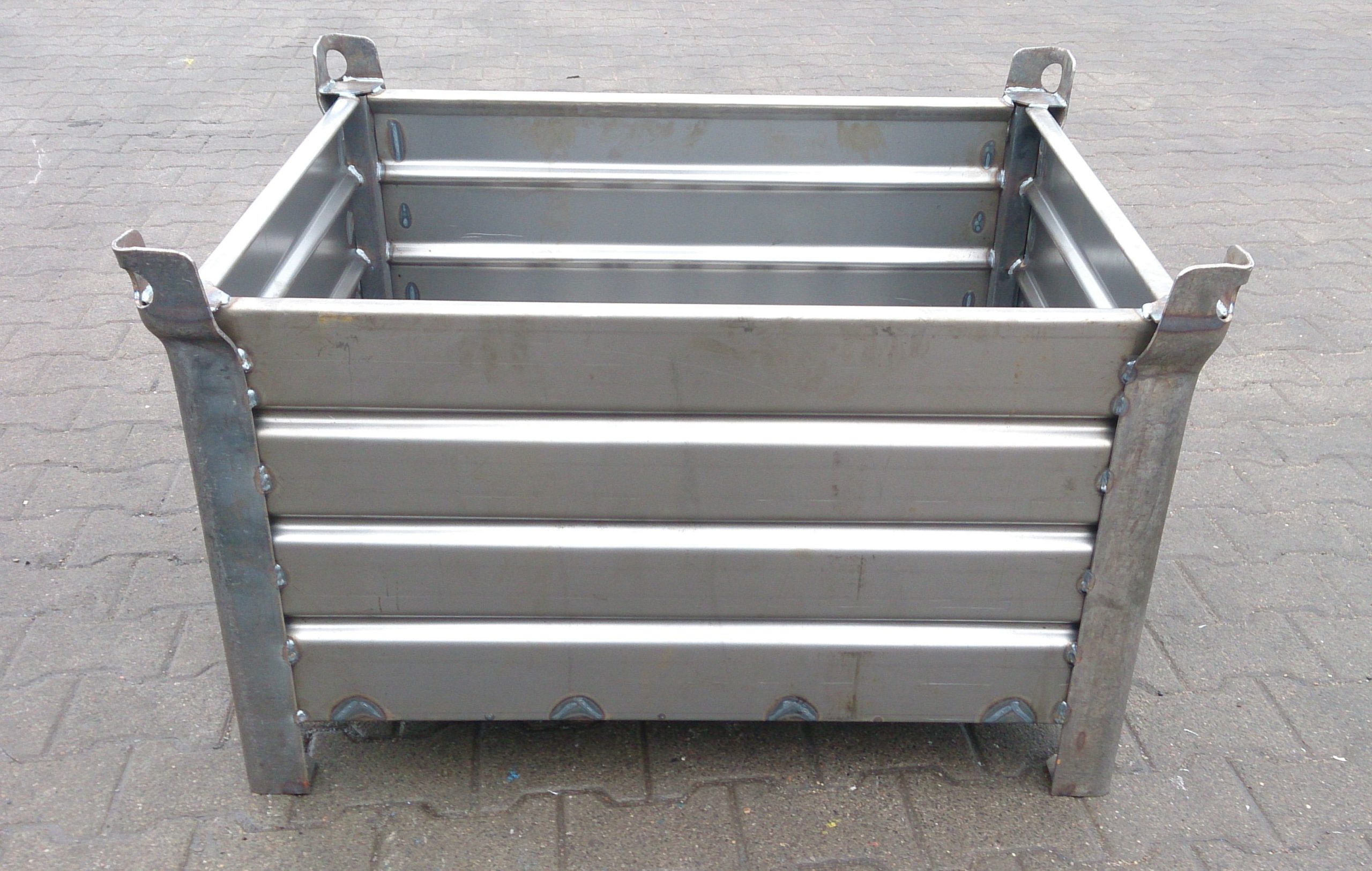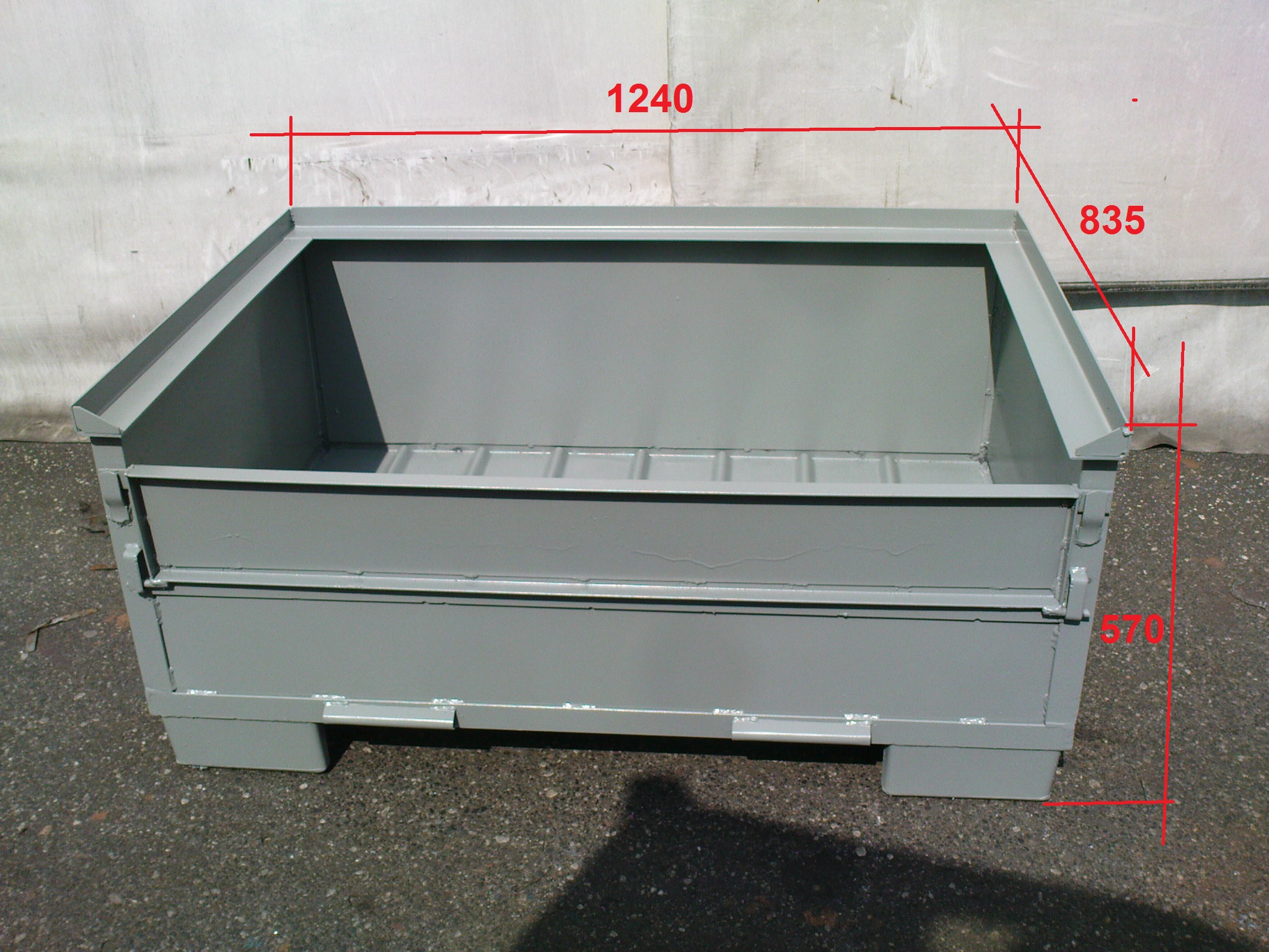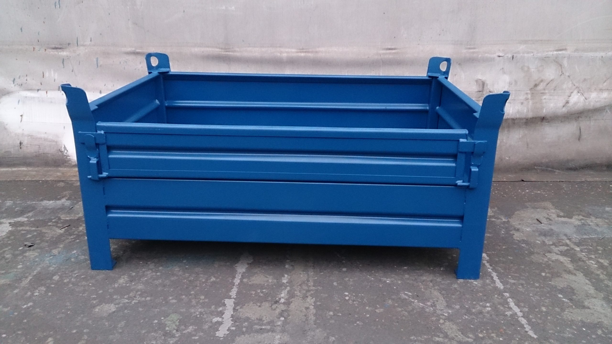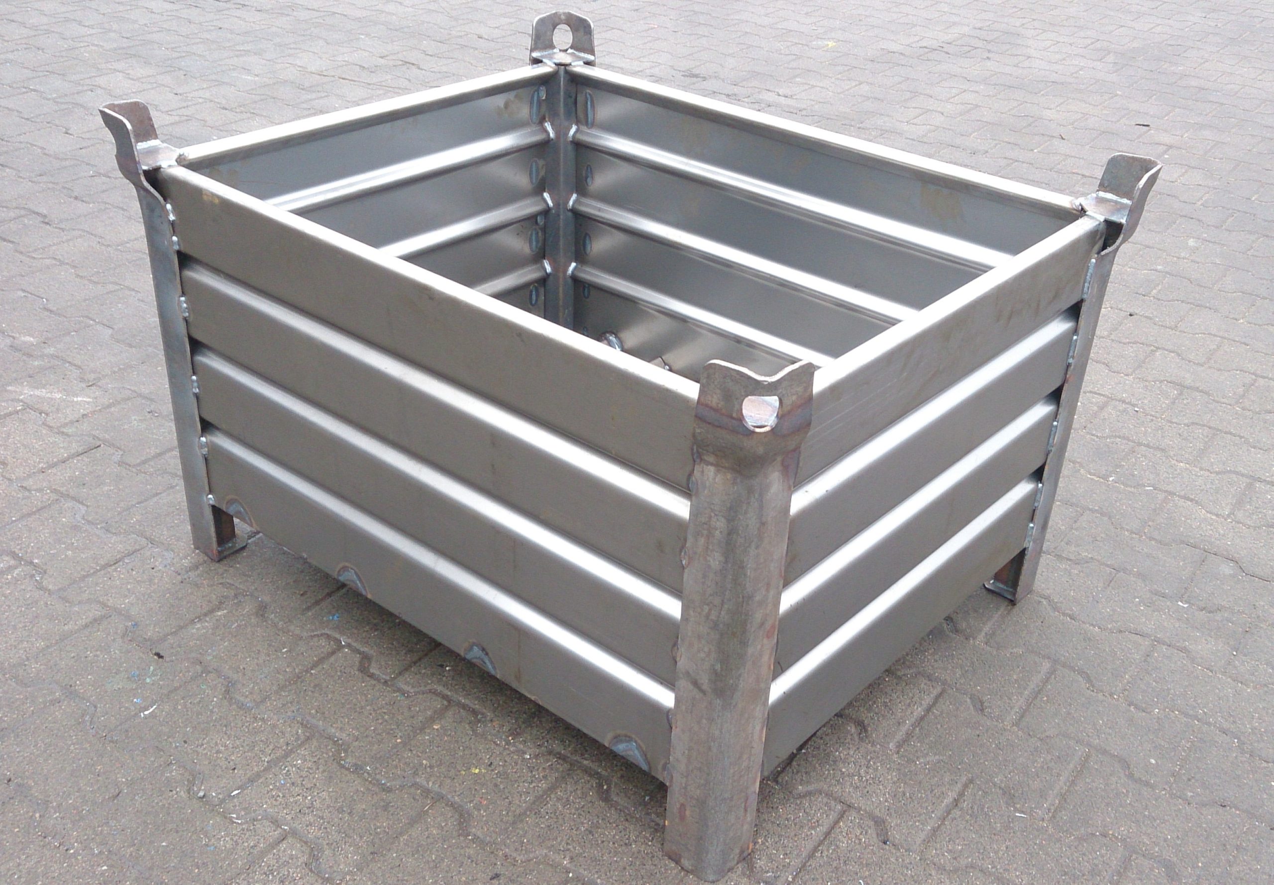 Pojemniki metalowe standardowo posiadają podstawę o wymiarach 1200×800 mm, natomiast standardowa wysokość zabudowy to 970, 570 lub 500 mm. Udźwig pojemnika to 1000 kg. Pojemniki można piętrować do 4 szt. Mogą być wyposażone w otwieraną do połowy wysokości ścianę przednią. Zabezpieczenie antykorozyjne stanowi lakier podkładowy, lakier proszkowy lub ocynk. Możliwe jest wykonanie pojemników o nietypowych rozmiarach wskazanych przez klienta.