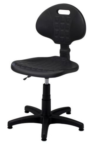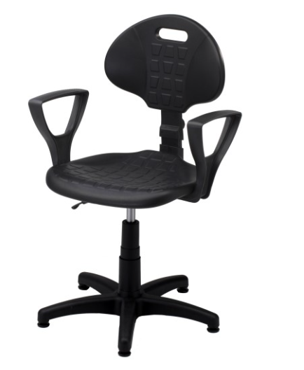 Obrotowe krzesło laboratoryjne FLT to wysokiej klasy wyposażenie przeznaczone do pracy w wymagających warunkach, łączące solidne wykonanie z komfortem użytkowania i łatwością przemieszczania. Siedzisko oraz oparcie zostały wykonane z antypoślizgowego poliuretanu, który cechuje się wysoką odpornością na uszkodzenia, działanie promieni UV oraz kontakt z kwasami, zasadami i preparatami dezynfekującymi. Regulacja wysokości realizowana za pomocą podnośnika pneumatycznego, a także możliwość ustawienia kąta nachylenia oparcia dzięki mechanizmowi CPT, pozwalają na precyzyjne dopasowanie krzesła do preferencji użytkownika. Stabilna podstawa pięcioramienna wyposażona w kółka bezpieczne dla podłoża zapewnia pewne podparcie i wygodne przemieszczanie się między stanowiskami pracy. Dostępne również w wersji na stopkach. Krzesło posiada certyfikat potwierdzający pozytywne wyniki testów wytrzymałościowych, co świadczy o jego trwałości i bezpiecznym użytkowaniu.