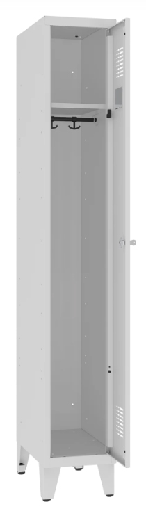 Drzwi wyposażone są w otwory wentylacyjne, które umożliwiają prawidłową cyrkulację powietrza wewnątrz szafy. Zabezpieczenie stanowi zamek ryglujący drzwi w jednym punkcie.