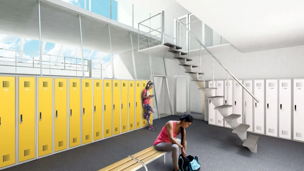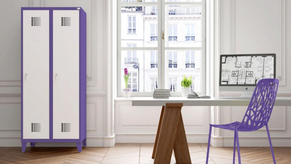 Każda szafa wyposażona jest w plastikowy drążek na ubrania, wieszaki, haczyk na ręcznik, lusterko oraz samoprzylepny plastikowy wizytownik. W standardzie szafy posiadają cokół, zapewniający stabilność konstrukcji.