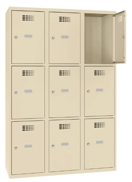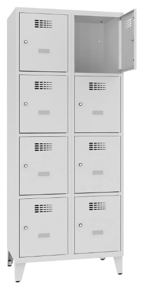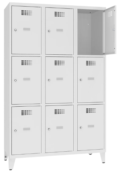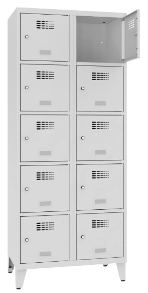 Praktyczna i solidna szafka skrytkowa z niezależnymi komorami o szerokości 40 cm, to idealne rozwiązanie do szatni pracowniczych, szkół, siłowni, klubów fitness, obiektów sportowych oraz zakładów pracy. Nowoczesny design w połączeniu z trwałą konstrukcją sprawia, że mebel doskonale sprawdzi się zarówno w przestrzeniach użytkowych, jak i w nowoczesnych wnętrzach komercyjnych. Każda komora wyposażona jest w samoprzylepny plastikowy wizytownik. Malowane są lakierem proszkowym. Wszystkie elementy szafy wykonane z blachy 0,5 mm. Malowana lakierem proszkowym. Wszystkie elementy szafy wykonane z blachy 0,5 mm.