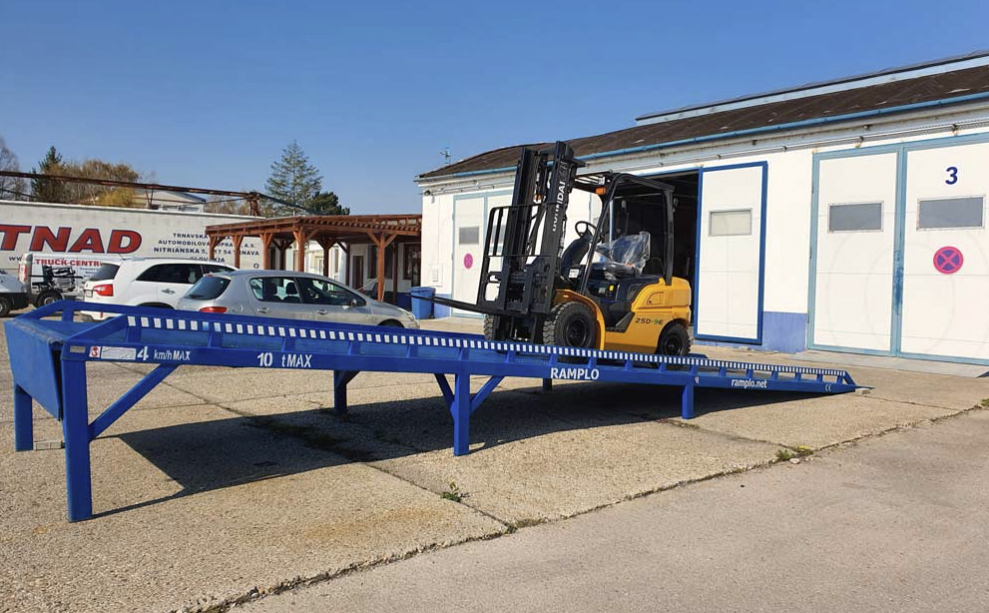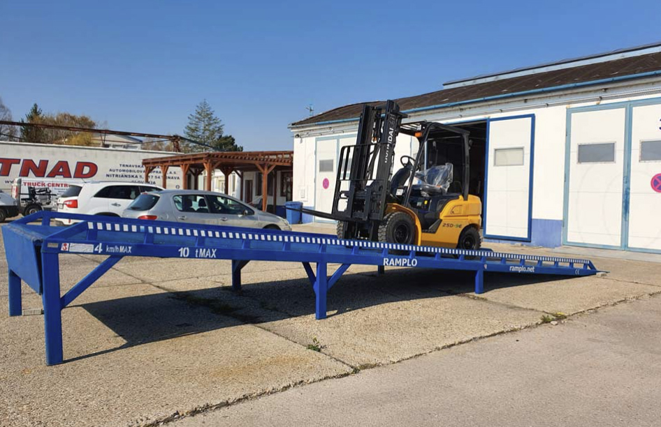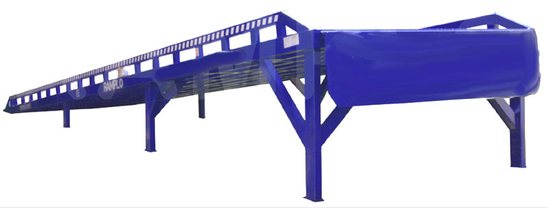 Stacjonarne rampy najazdowe umożliwiają wjazd lub wyjazd samochodów lub wózków widłowych do hal magazynowych, których posadzka jest na wysokości standardowych ram, czyli około 110-120 cm. Całość konstrukcji nośnej wykonana jest z elementów stalowych najwyższej jakości. Bieżnia najazdowa pokryta spawaną strukturą sieciową. Rampy wykonywane są w różnych wersjach pokrycia najazdów. Gwarancja na rampy wynosi 18 miesięcy. Istnieje możliwość wykonania rampy o innych wymiarach i parametrach.