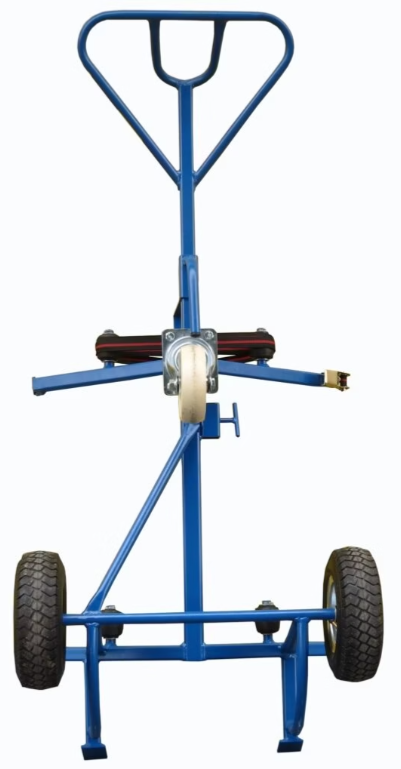 Wózek przeznaczony do transportu i obsługi beczek. W pozycji poziomej zainstalowane są rolki, które umożliwiają wygodne obracanie beczki. Trzecie koło podporowe umożliwia transport ciężkich beczek w pozycji poziomej. Wyposażony w duże, pneumatyczne koła gumowe (średnica 260 mm) na łożyskach wałeczkowych, wózek amortyzuje drgania i zapewnia płynny przejazd nawet po nierównym podłożu. Ergonomiczny uchwyt z tworzywa sztucznego ułatwia obsługę, a niewielka masa własna (18 kg) sprawia, że wózek jest lekki i łatwy w manewrowaniu. Wyposażony jest również w pas unieruchamiający beczkę na prowadnicach.